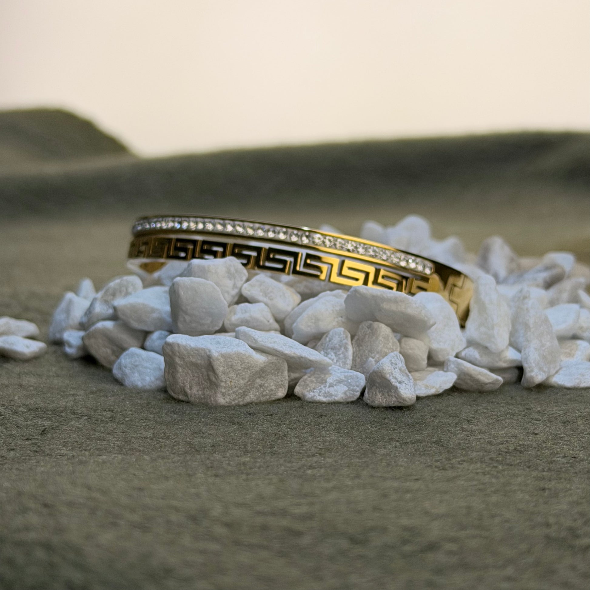 Step into timeless elegance with this Roman-inspired bangle, crafted to embody strength and grace. Its sleek, golden finish makes it the perfect statement piece—whether worn solo for a bold look or stacked for effortless sophistication. Inspired by the power of ancient empires, this bangle brings a touch of history and luxury to your everyday style.